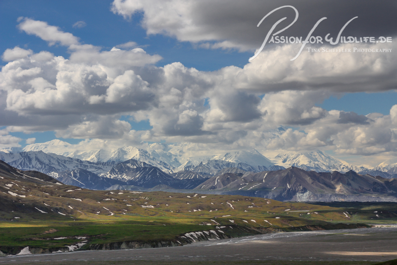 Der bekannteste Nationalpark Alaskas ist der Denali Nationalpark. In ihn führt eine über 90 Meilen lange Straße, die nur mit Parkbussen befahren wird.