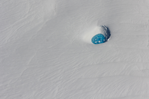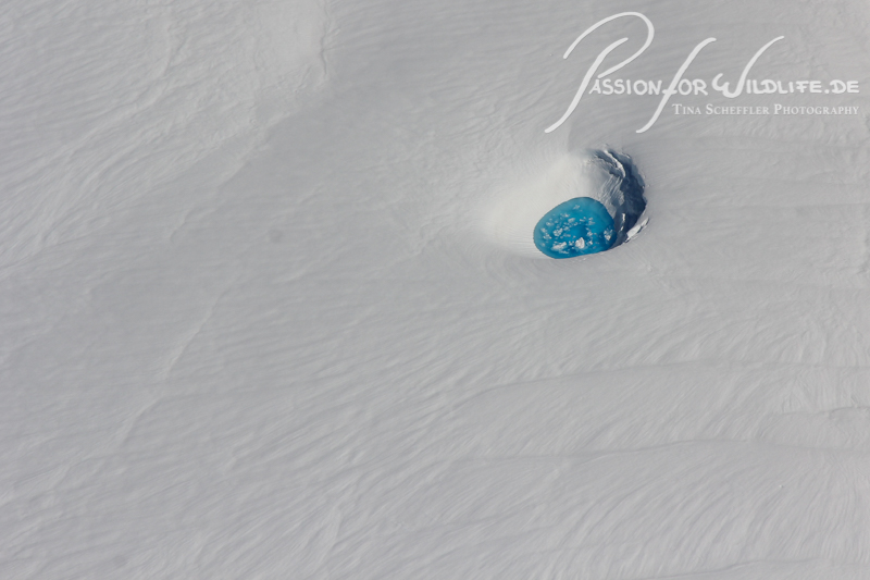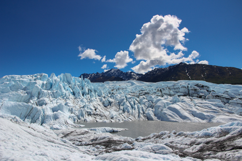 Teilweise haben sich auf den Gletschern Pools mit türkisblauem Wasser gebildet.
