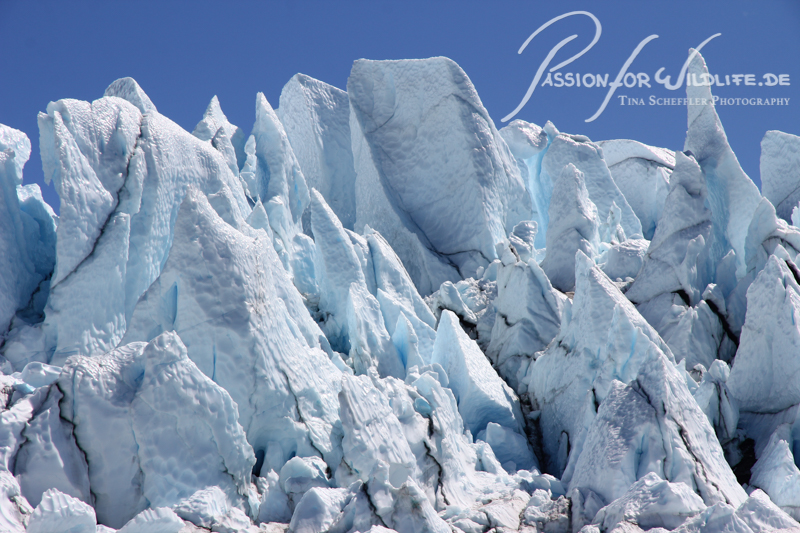 Mit Steigeisen und Helm ausgestattet geht ins ins Eis - dorthin, wo das Eis so stark gepresst ist, das es blau wirkt.