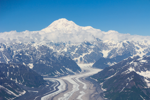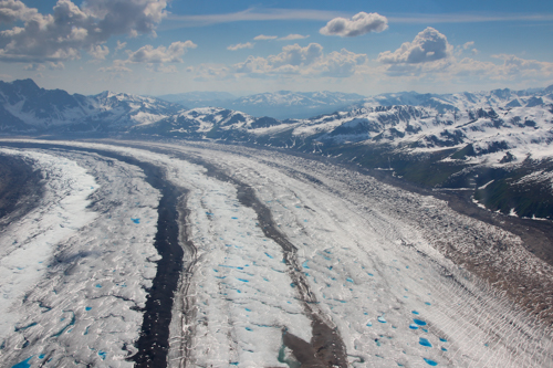 Die Gletscher erstrecken sich über etliche Kilometer durch die Alaska Range.