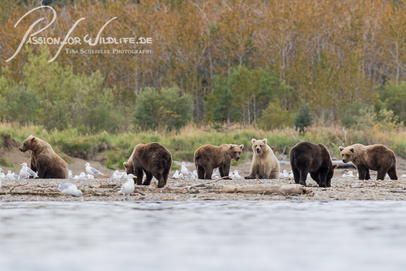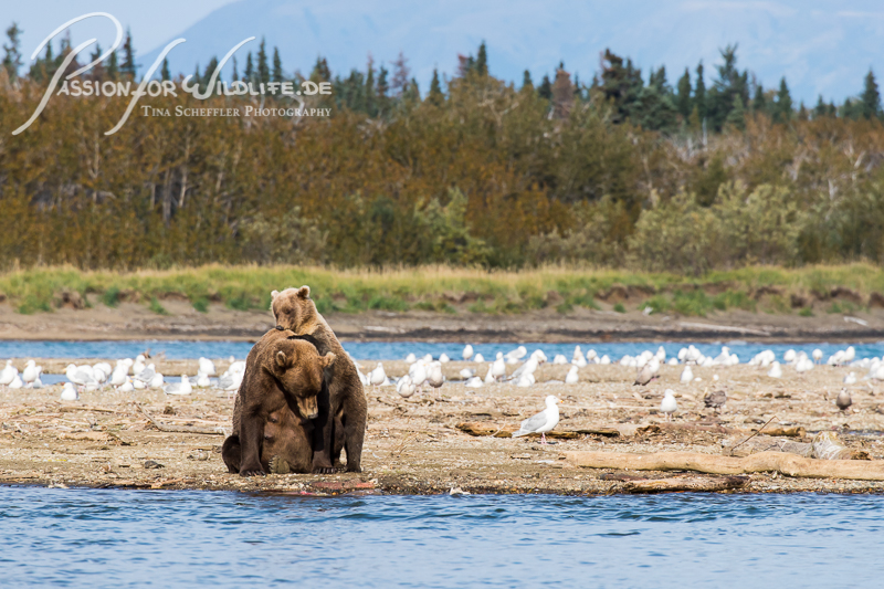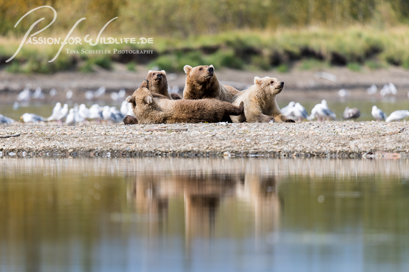 Wieder zurück am Strand treffen wir die beiden Bärenmütter mit ihren Jungen wieder.