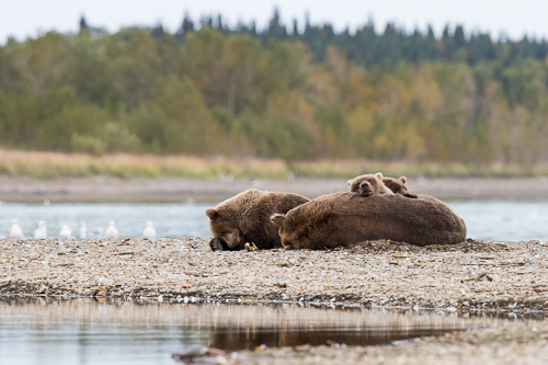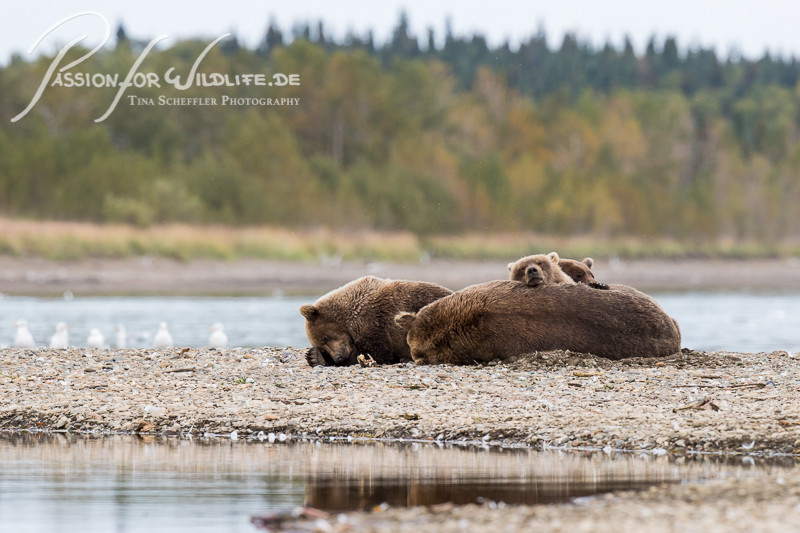 …und die zweite Bärenfamilie hat es sich einige Meter entfernt gemütlich gemacht und eng zusammen gekuschelt.