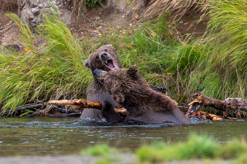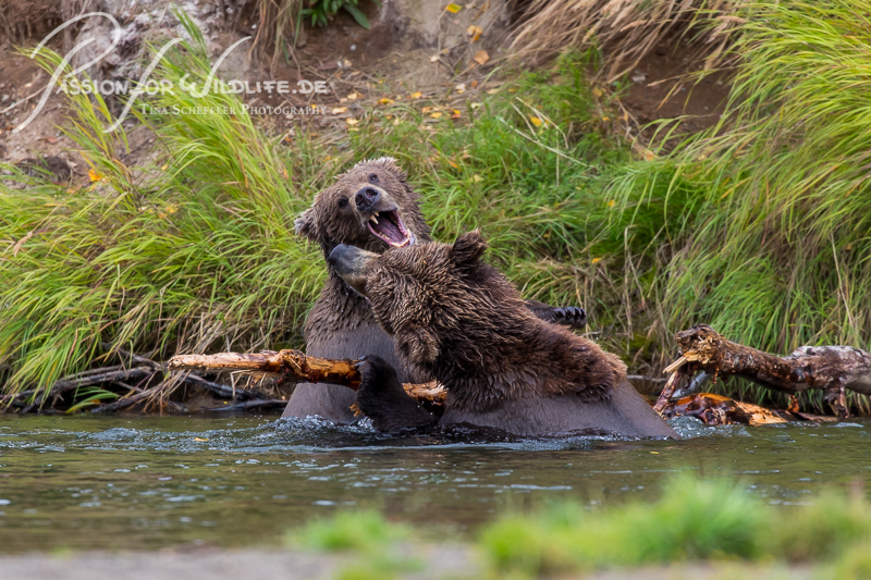 Gut zu sehen ist dies auch bei diesen spielenden Jungbären - hier handelt es sich um Peanut und Pepper, die wir schon aus den Vorjahren kennen.