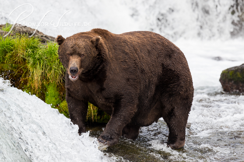 Auf dem weiteren Weg zu den Fällen treffen wir immer wieder auf Bären. Manchmal sind sie auf einmal da, ohne jede Vorwarnung.