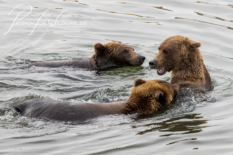 Diese drei subadulten Bären müssen noch Einiges an Gewicht zulegen, bis sie auch nur annähernd so groß und schwer sind wie 747.