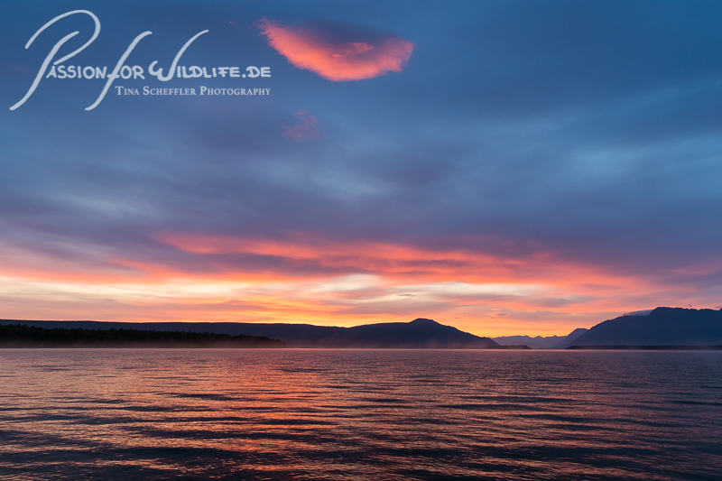 Der Abschied vom Katmai Nationalpark gestaltet sich farbenfroh: mit einem wunderschönen Sonnenuntergang.