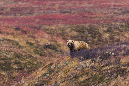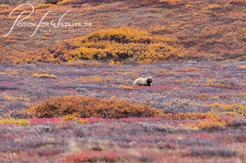 Im Denali Nationalpark sehen wir Grizzlybären durch die Herbstlandschaft streifen. Sie sind unter Stress, da der Winter bald bevorsteht.