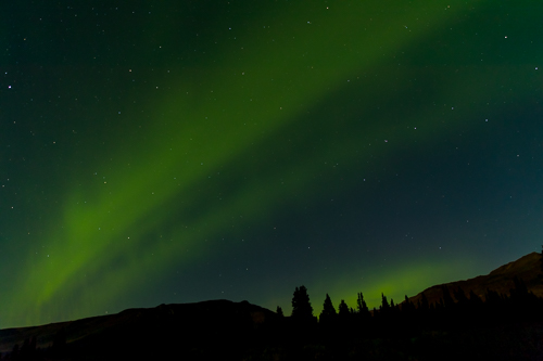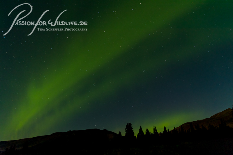 Zum Abschied haben wir Glück und sehen Nordlichter über dem Savage River. Was für ein Erlebnis!