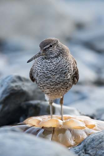 Diese Limikole hat sich eine gestrandete Qualle als Rastplatz ausgesucht.