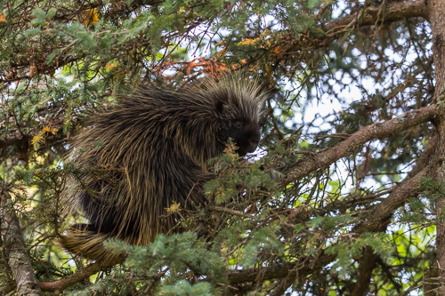 Diesen Baumstachler entdeckten wir, weil er früh morgen laut grunzte.