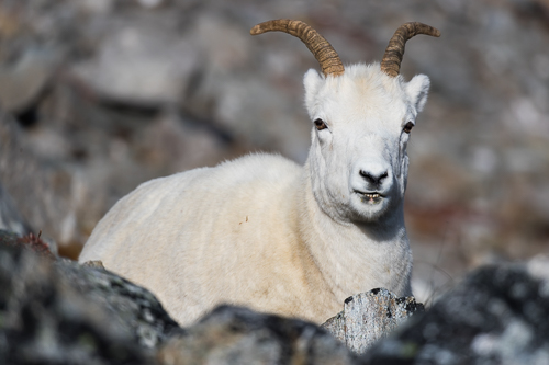 Wir wählen einen Umweg und werden mit dieser Begegnung mit einem Dallschaf belohnt.