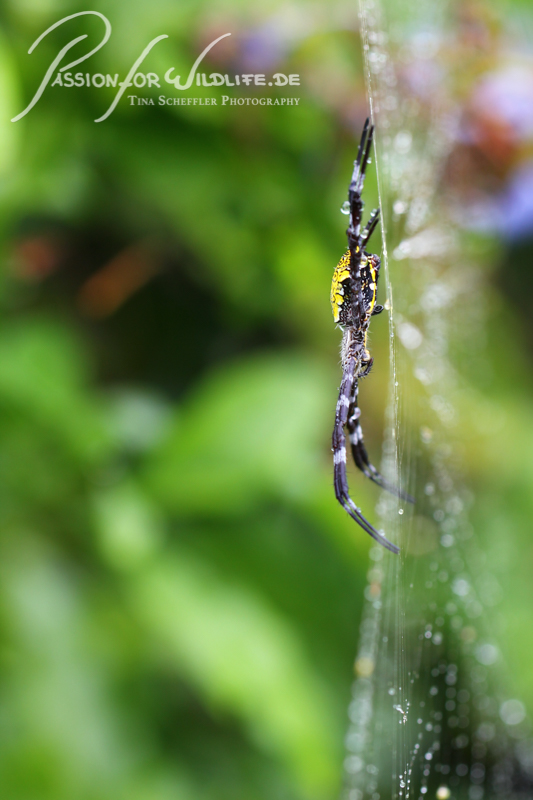 Hawaiianische Gartenspinnen gehören zu den echten Radnetzspinnen. Hier ist ein auffälliges Weibchen zu sehen.