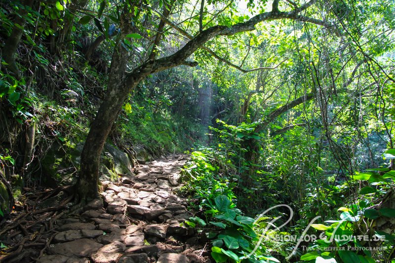 Kauai wird auf Grund seiner üppigen Vegetation auch Garteninsel genannt. Die riesigen Farne benötigen die hohen Niederschläge auf der Insel.