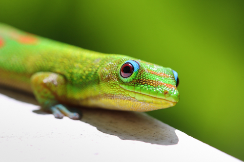 Die Goldstaub-Taggeckos sind tagsüber aktiv. Sie kommen ursprünglich von Inseln des Indischen Ozeans und wurden wie so viele Tiere auf Hawaii eingeschleppt.