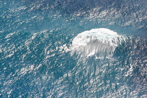 Aus der Höhe sehen die Wellen fast schon zahm aus - dabei sind es mehrere hohe Meter Wellen, die nur die besten Surfer bezwingen.