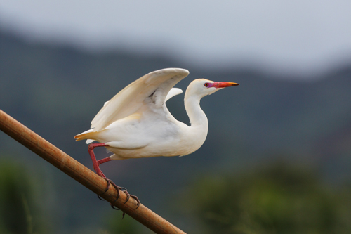 Auf Hawaii gibt es viele Vogelarten. So wie diesen (Kuh-)Reiher, der sich gerade auf dem Absprung befindet.