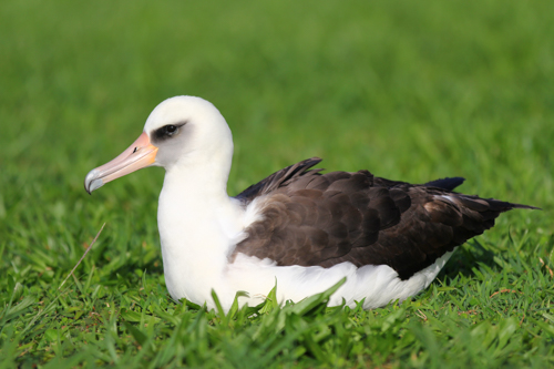 Dieser Laysan-Albatros war sehr zutraulich und hat es sich inmitten eines Parks auf dem Rasen gemütlich gemacht.