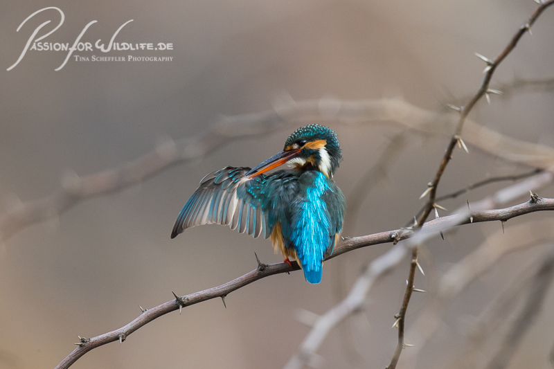 Dieser Eisvogel begrüßt zwei vorbei fliegende Artgenossen