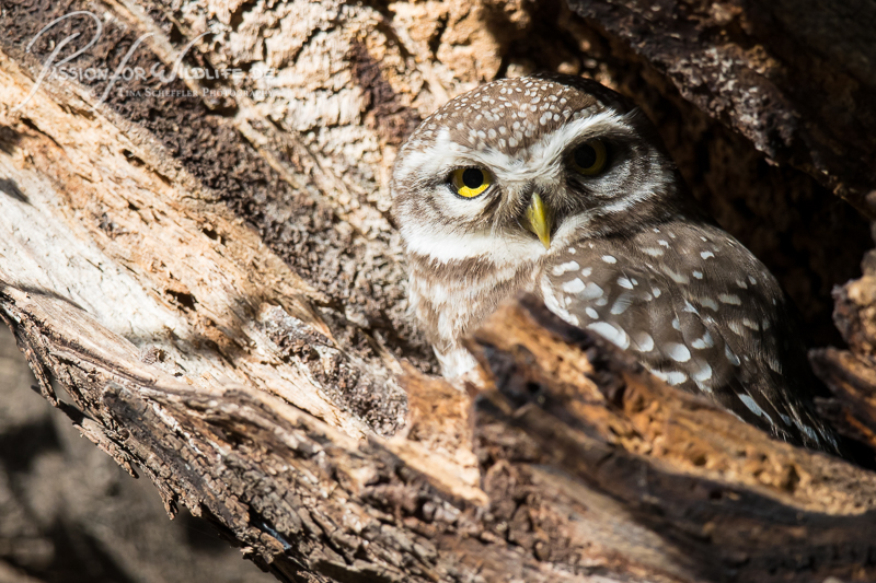 Brahma Kauz (spotted owlet) im Astloch sitzend