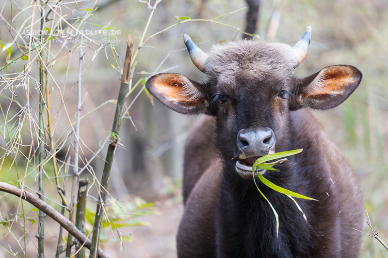 Indischer Gauer beim Fressen im Kanha Nationalpark
