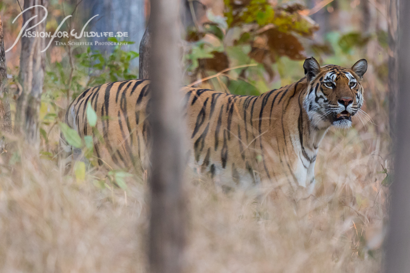 Begegnung mit einem Tigerweibchen im Pench Nationalpark