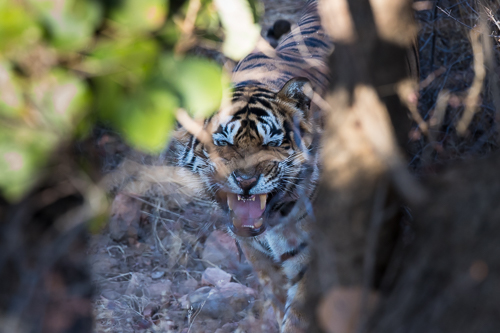 Fauchendes Tigermännchen im Ranthambore Nationalpark