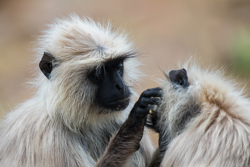 Zwei Indische Languren bei der Fellpflege