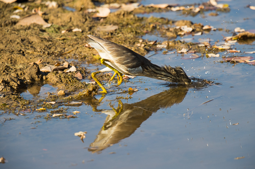 Paddyreiher (Indian pond heron) beim Fischfang