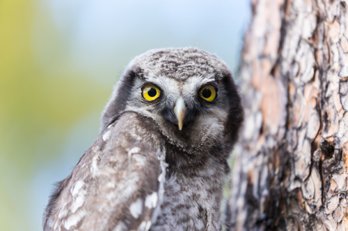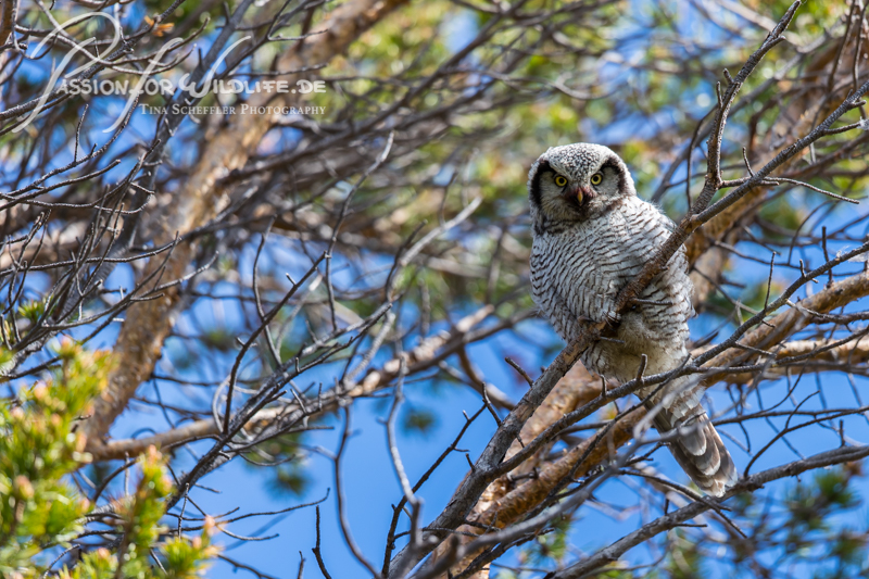 Hoch oben im Norden von Schweden im Abisko Nationalpark hören wir vertraute Rufe…und sehen kurz darauf unsere erste Sperbereule.