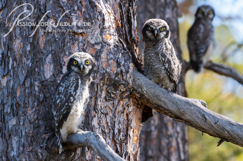 Bei einer Sperbereule bleibt es nicht lange. Plötzlich entdecken wir wenige Meter von uns entfernt drei Jungtiere.