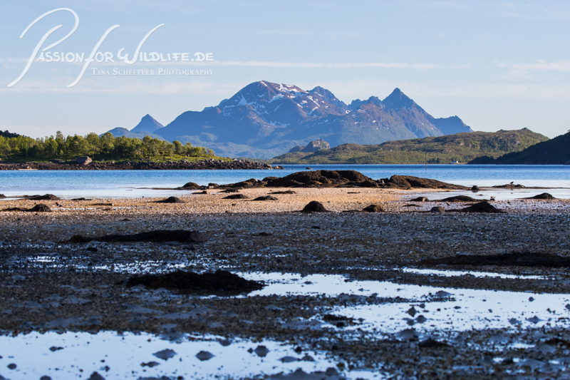 Auf den Lofoten übernachten wir direkt am Raftsund. Nachts stehen wir extra auf, um die Hurtigrute auf ihrem Weg durch den Raftsund anzuschauen.