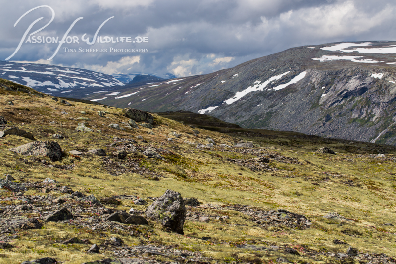 Endlich sind wir im Dovrefjell angekommen. Dort wandern wir oben im Fell in dieser wunderschönen Umgebung.