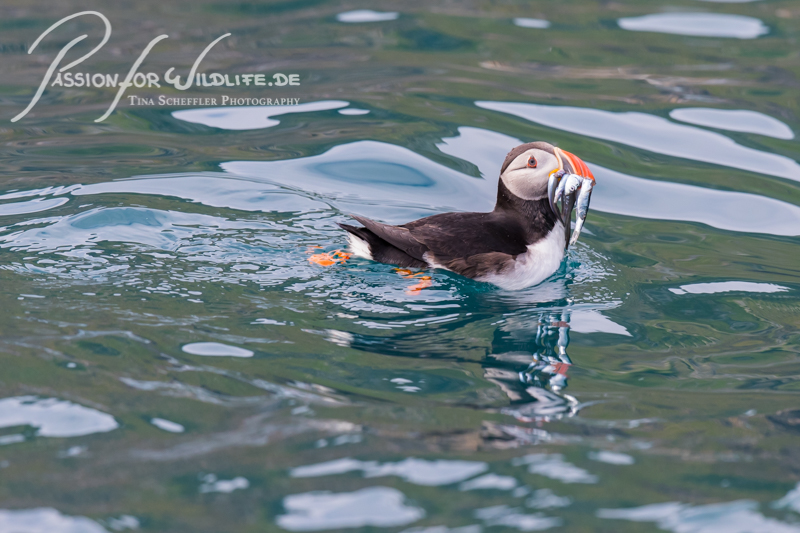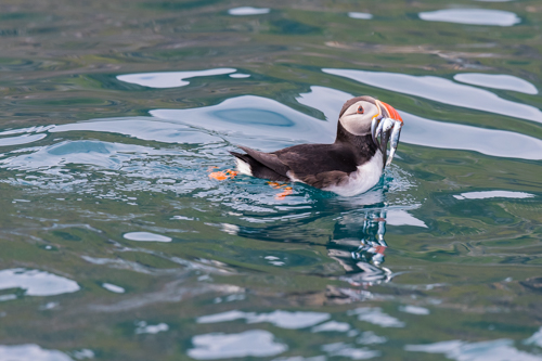 Auch wenn dieses Jahr die Sandaale in Hülle und Fülle da sind, sehen wir nur selten Papageientaucher mit dem Schnabel voller Fische.