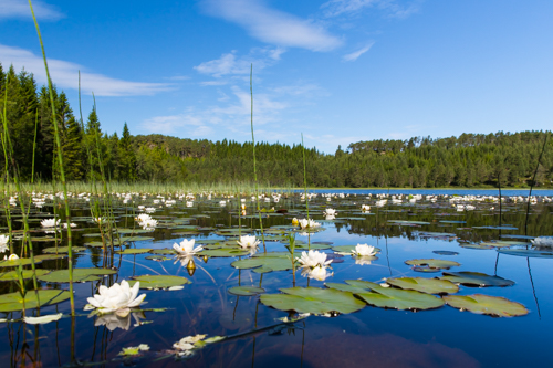 Auf dem Weg in den Süden sehen wir ab und zu Seen, die mit Seerosen zugewachsen sind.