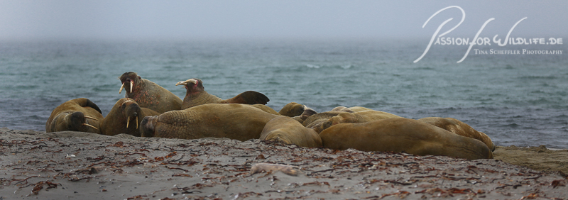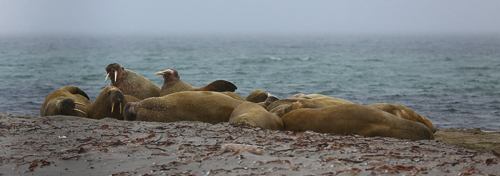 Diese Gruppe Walrosse hatte es sich am Strand gemütlich gemacht