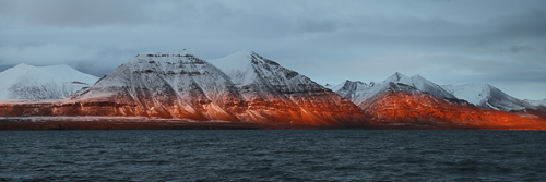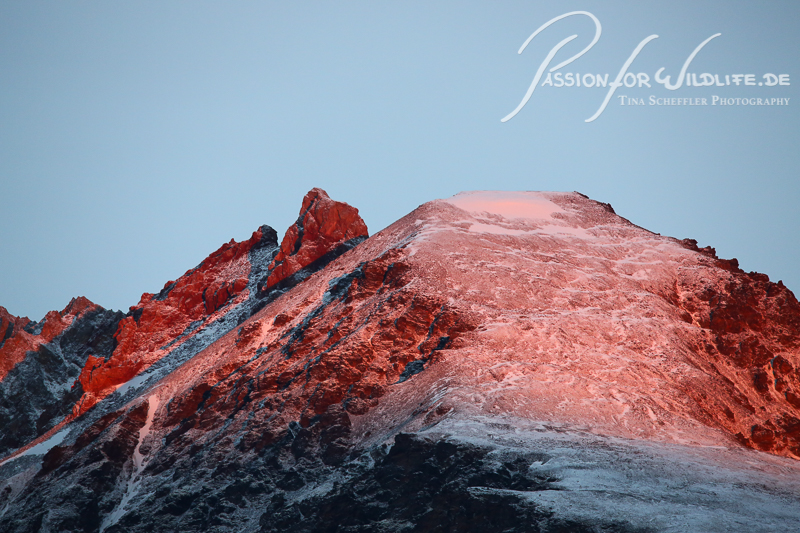 Die letzten Sonnenstrahlen lassen die Bergspitzen erglühen