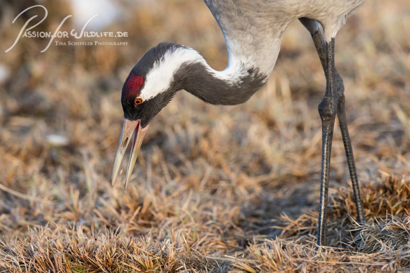 Tagsüber fressen die Kraniche das Getreide, das auf den Wiesen ausgestreut wurde.