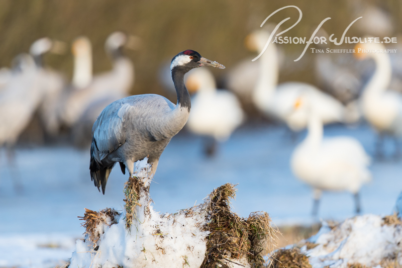 Neben Kranichen sind auch hunderte Singschwäne am Hornborga.