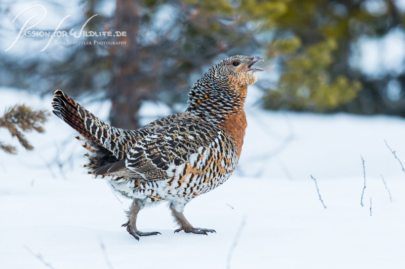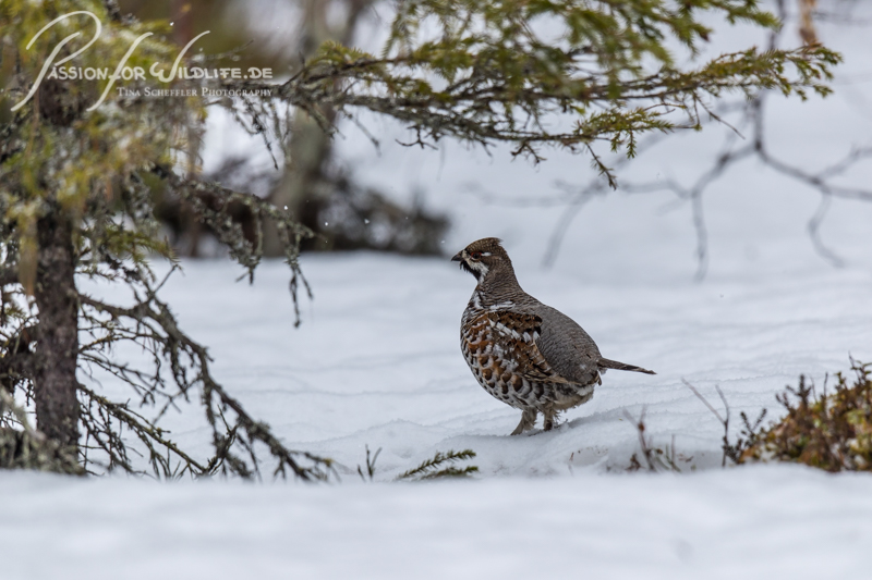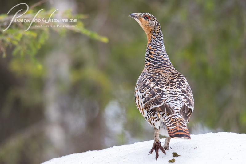 Diese Auerhenne machte sich direkt aus dem Staub, als wir sie entdeckten, und schenkte uns lediglich einen kurzen Blick über die Schulter.