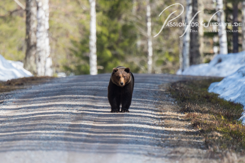 Als wir im Hamra Nationalpark wandern wollten, kam uns dieser Braunbär entgegen. Kaum hatte er uns entdeckt, verschwand er auch schon in den Wald.