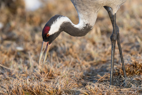 Während einige Kraniche rot gefärbte Augen aufweisen, …
