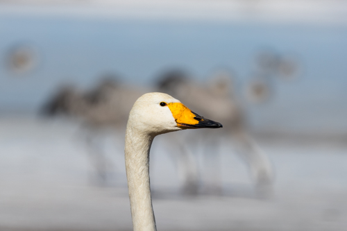 Die Singschwäne nutzen den Rast- und Futterplatz seit einigen Jahren vermehrt auf ihrem Zug nach Norden.